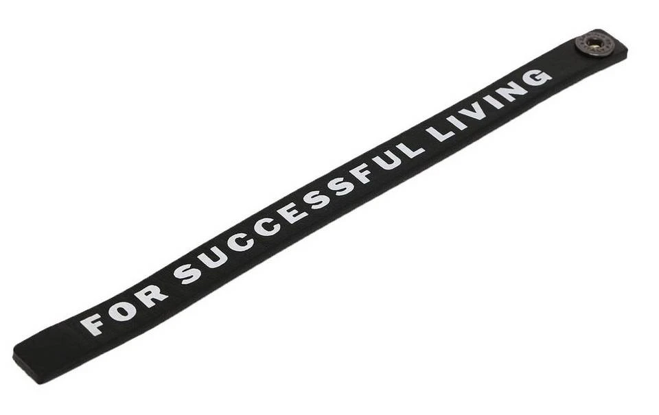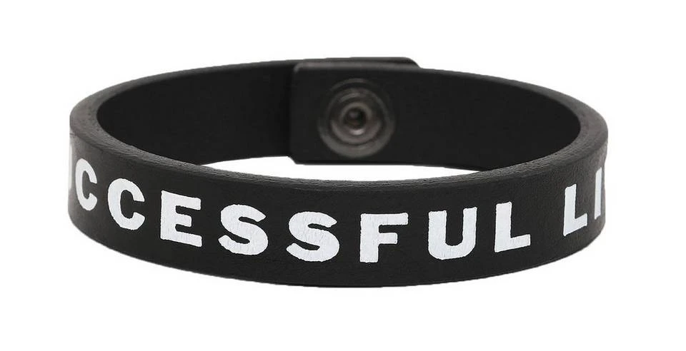 Ein dünnes Armband aus Leder mit „Successful“-Slogan.