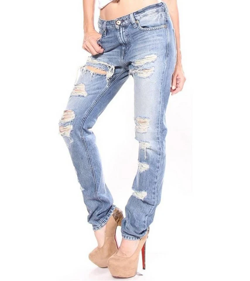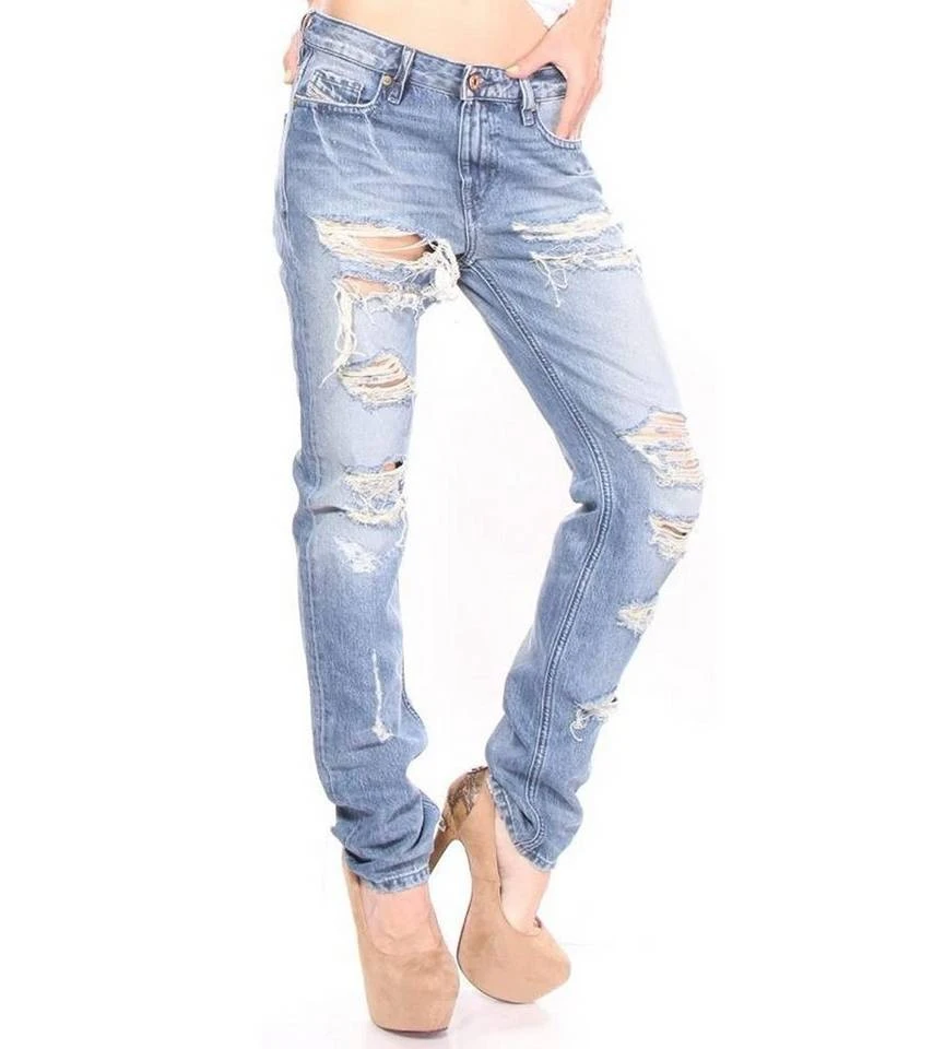 Diesel Slim-Straight Jeans bequeme Denim-Hose für Frauen im Destroyed-Look Blau